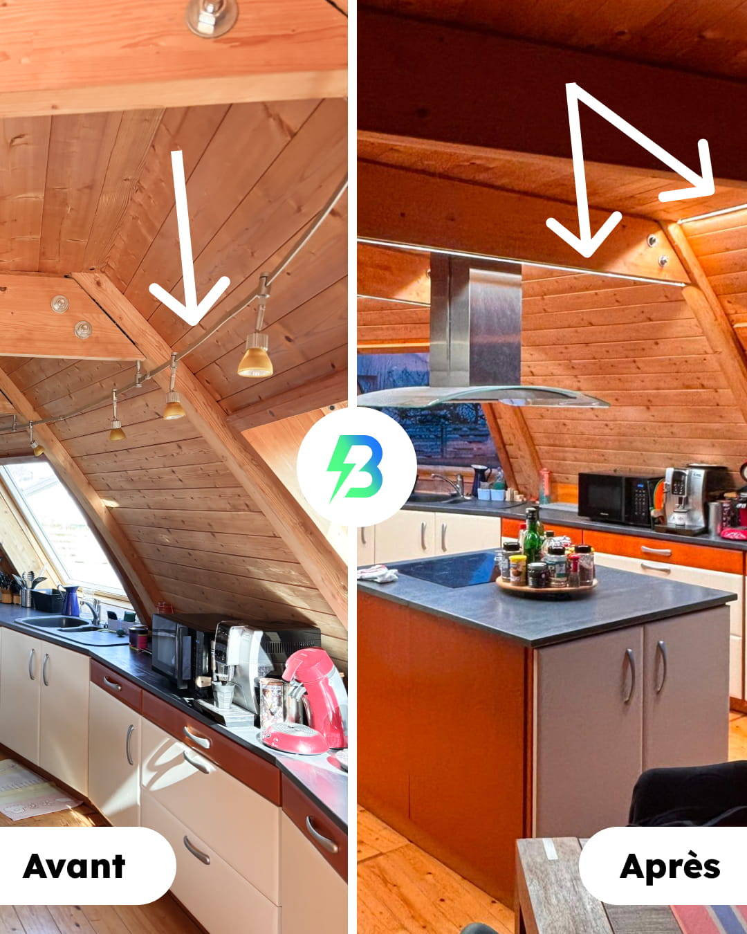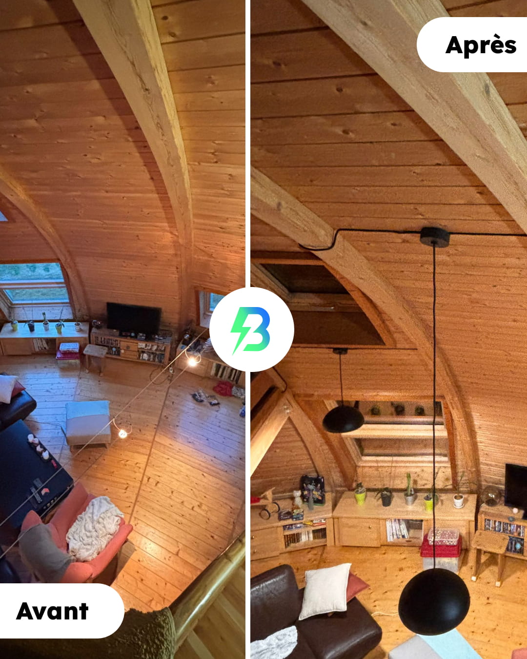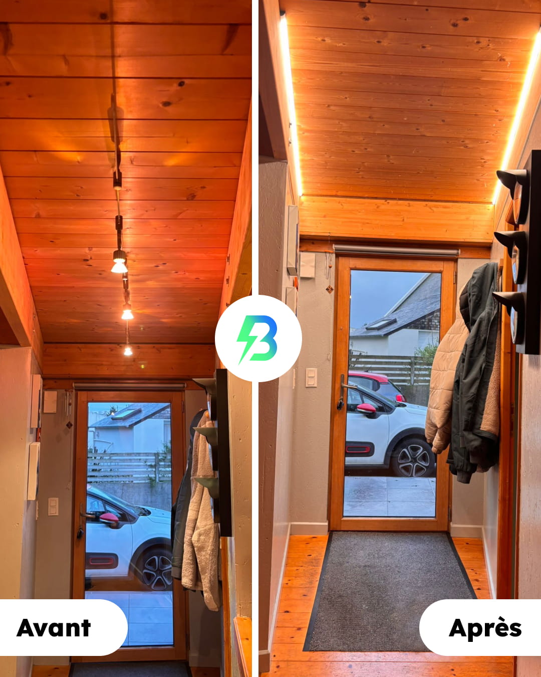 - NInstalltion de rubans leds et suspensions lumineuses modernes pour créer une nouvelle ambiance lumineuse